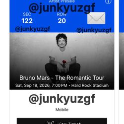 Bruno Mars In Miami 09/19 Ticket$400Oakland Park, FL
