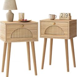 2 Nightstands with Door Small End Side Tables Bedside Natural Oak Bedroom Living Room $70Hollywood, FL