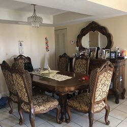 Elegant Solid Wood Dining Room Set – Table, 6 Chairs, Buffet & Mirror$750Miami, FL