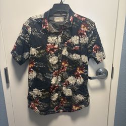 Free Planet Floral Woven Cotton Button-Up Shirt Navy Red Men's Size L $11Oakland Park, FL