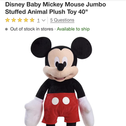 Disney Baby Mickey Mouse Jumbo Stuffed Animal Plush Toy 40"$59Medley, FL