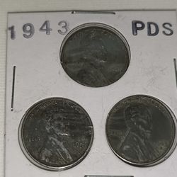 1943 Steel Lincoln Cents, one from each US Mint location (Philadelphia, Denver, and San Francisco),$5Biscayne Park, FL