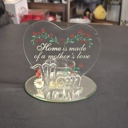 " Home Is Made Of A Mother's Love " Beveled Glass Heart Candle Holder, Art Glass "Mom" On Mirrored Base 3.5" X 4"$10Fort Lauderdale, FL