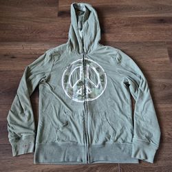 Justice Zip Up Hooded Jacket Reversible Camo Green Glitter Peace Sign Girls Sz14$6Fort Lauderdale, FL