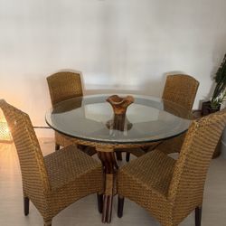 Modern Glass Dining Table with Solid Stone Base & 4 Wooden Chairs - Can Transport Into Your Home$700Miami, FL