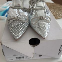 Aldo Shoes Size 8 Berthina Peep Toe Platform High Heel Silver Glitter Sparkle$20Miami, FL