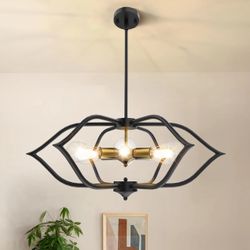 6-Light Chandelier Black Gold Adjustable 27" Dining Light Fixture Industrial Modern Semi Flush Mount$80Hollywood, FL