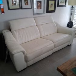 White Real Leather/Vinyl Power Reclining Sofa Loveseat Excellent Condition. Adjustable Headrest / Footrest. Dimensions: 83W x 33H x 43.5L. Was $2,400$1,100Pembroke Pines, FL