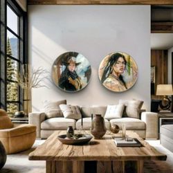 "Cowgirl And Apache Indian" Oil And Acrylic On MDF,Round Original Paintings $1,200Hollywood, FL