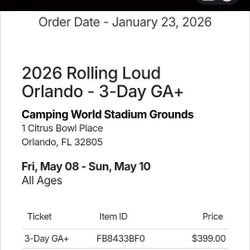 Rolling Loud GA+ 3 Day Ticket$300Fort Lauderdale, FL