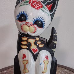 12" Solid Wood Day of the Dead Skeleton Cat Statue Figure.$25Miami, FL