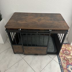 Wooden Dog Crate End Table, Rustic Brown, Small Pet House with 2 Sliding Doors, Indoor Decorative$100Hialeah Gardens, FL
