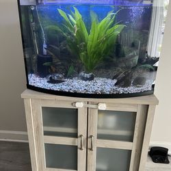 Bowfront Plastic Aquarium Kit w Filter, Power Cord, Decorations Magnetic Cleaner$55Miami, FL