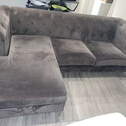 Gray Velvet Sectional L Shape Couch Sofa with Movable Chaise$600Dania Beach, FL