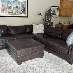 Sectional, Genuine Leather Sofa And Large Leather Ottoman $800Laud Lakes, FL