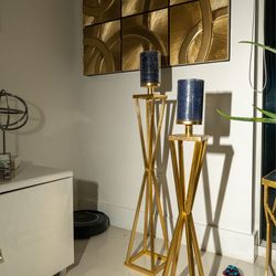 Pair of Gold Metal Candle Holders with Blue Candles$50North Miami Beach, FL