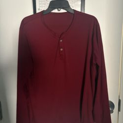 Men's Red Solid Henley Long Sleeve Button-Up Casual Shirt Size Regular$8Oakland Park, FL