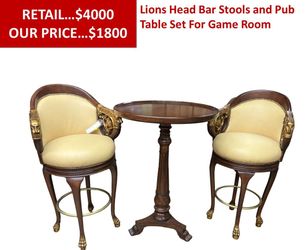 Lions Head Bar Stools and Pub Table Set For Game Room$1,800Fort Lauderdale, FL