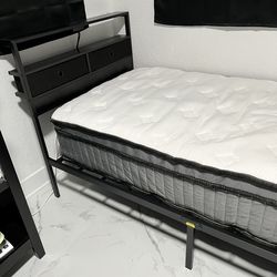 Twin Bed Frame with Charging Station, Twin Size Platform Bed with Metal Slats, Wood Headboard with 2 Fabric Drawers and Storage Shelves + mattress$250Miami, FL