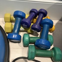 Weights $8-$20 PER PAIR. Colorful pairs: 2, 3, 5, 6 pound weights. Sold In Pairs. Or Iron Dumbbell With Bar & Weights $20. $8Boca Raton, FL