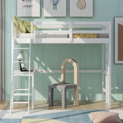 Max & Lily Loft Bed, Twin Bed Frame For Kids With Bookcase And Desk White $400Hollywood, FL