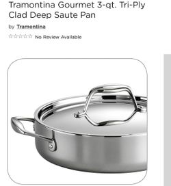 TARMONTINA 18/10 STAINLESS STEEL GOURMET 3-QT TRI PLY CLAD DEEP SAUTE PAN WITH LIFE TIME WARRANTY$65Lehigh Acres, FL