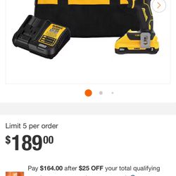 New DEWALT 20V Drill Kit – Battery, Charger & Bag Included$130Fort Myers, FL