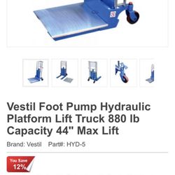 Vestil Foot Pump Hydraulic Platform Lift $680Port St. Lucie, FL