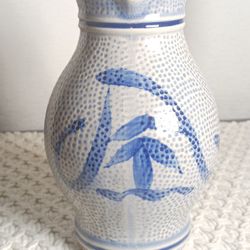 Vtg Studio Ceramic Pitcher Cream Blue Dotted Marked 0.33L Signed M.G.A. 5 1/2"$19Ocean Brz Pk, FL