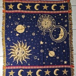 Crown Crafts Inc Astrology 100%cotton Throw 48"×60" TH Navy/Yel Never Used $20Stuart, FL