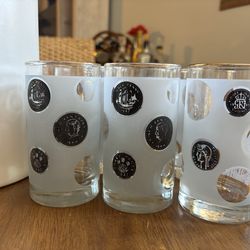 vintage frosted glasses featuring a mid-century coin design.$12Port St. Lucie, FL