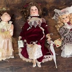 Three Vintage porcelain doll one has stained clothes $5 for all$5Port St. Lucie, FL