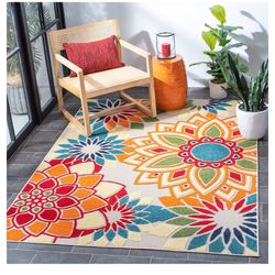 SAFAVIEH Washable Rug Outdoor Cabana Collection - 6'7" x 9', Ivory & Orange, Non-Shedding & Easy to Clean, Ideal for Patio, Backyard, Mudroom $70Port St. Lucie, FL