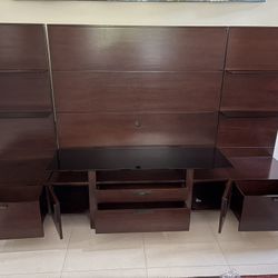 Media Center, Brown dark wood , up to 85” tv with glass shelves.$600Port St. Lucie, FL