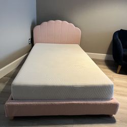 Pink Twin Bed Frame for Kids, Upholstered Platform Bed with Cute Boucle Velvet Headboard for Girls, No Box Spring Needed, Easy Assembly, Durable Desig$150Gainesville, FL