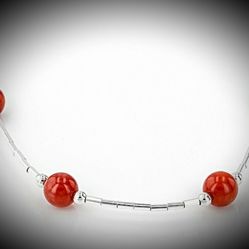 5mm round red coral bead sterling liquid silver station necklace$49Trenton, FL