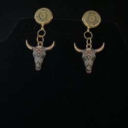 New Stud Earrings Made With Authentic Bullets And Enamel Steer Skull$20Archer, FL