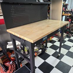 Work Bench for Garage 48 Inch Heavy Duty Rubberwood Tabletop Workbench with Wheels, Pegboard, Drawers, Power Outlets Adjustable Height Work Table for $260Fort Lauderdale, FL