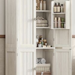 Tall Storage Cabinet 53” | 4 Doors + Extra Shelves Bathroom Gabinet - Rustic White Pantry Organizer$89Hialeah, FL
