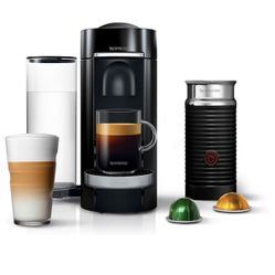 Nespresso VertuoPlus Deluxe Coffee and Espresso Machine Bundle with Aeroccino Milk Frother by De'Longhi, Black. Includes Pod Drawer Organizer. $140Miami, FL