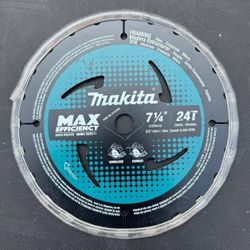 Makita 7-1/4" Circular Saw Blade 24T Framing Wood 5/8" Arbor Max Efficiency$15Halndle Bch, FL