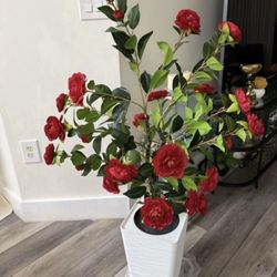 Pretty Artificial Plant 4 Ft With Red Flowers Comes With Tall Planter! Brand New $90Pembroke Pines, FL