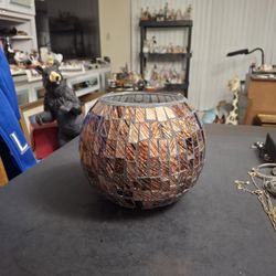 Large Orb Shaped Mosaic Glass Vase Candle Holder In Iridescent Rose, Gold & Bronze 6"H X 7"W$12Fort Lauderdale, FL