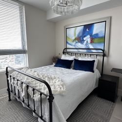 Queen size black metal bed frame with headboard and footboard + Serta mattress included. Both in excellent condition.$350Miami, FL