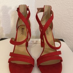RAULITE Red Suede Strappy Block Heel Ankle Strap Buckle Open Toe Women's Sandals$30Miramar, FL