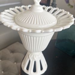 Fostoria Arlington Pattern Milk Glass Pedestal Compote with lid, manufactured by the Fostoria Glass Company in Fostor$55Fort Lauderdale, FL