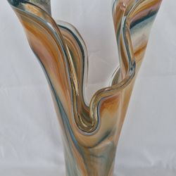 Large Hand Blown Murano Blue/Orange Ruffle Handkerchief Vase 16"x9" Inch ECU$175Fort Lauderdale, FL