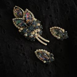 Antique multicolor foil, glass and rhinestone brooch and earring set$150Hollywood, FL
