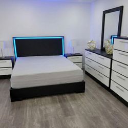 Brand New Queen Bed with Mattress and 2 Nightstands - Cama Queen Con Luces Led, ColchΓ³n Y 2 Mesas de Noche Nuevo β¦ Fast π$850Oakland Park, FL