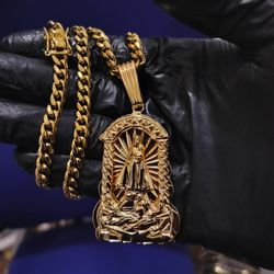 14k gold plated 6mm Cuban link chain and pendant $150Hollywood, FL